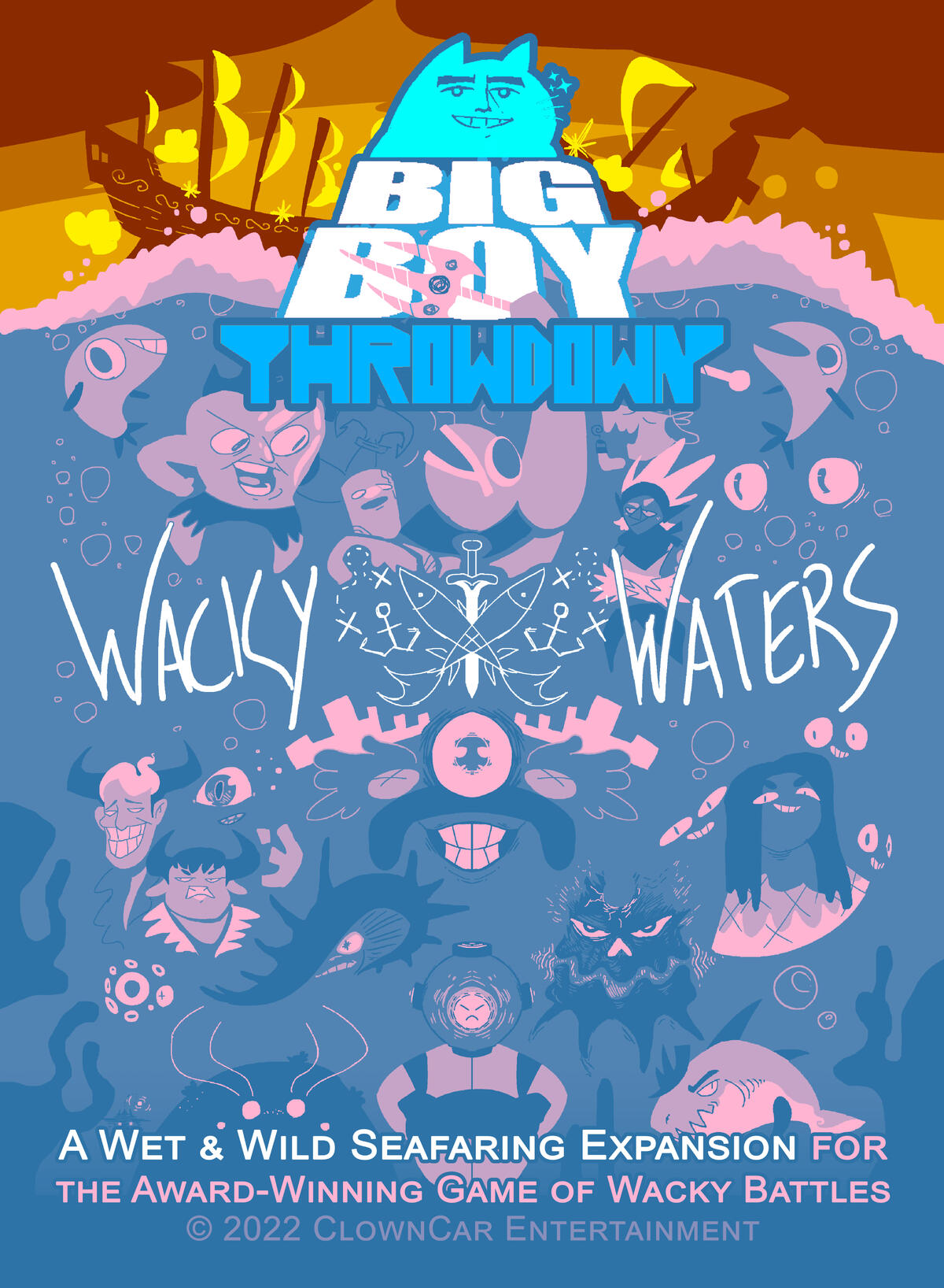 Big Boy Throwdown: Wacky Waters is the first ever Expansion deck for the award-winning game of Wacky Battles. Embark on the high seas with Powerful Pirate Lords, Legendary Leviathans, Burning Buccaneers, Denizens of the Deep Sea, and much, much more!This Expansion can be played all on its own, but it can also add all sorts of variety to the base game! With a new type of Bomb card, new Events, and 40 new characters, we encourage you to mix and match past and future BBT decks to your heart's content!